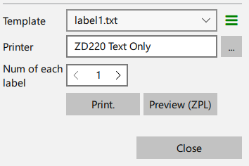 - In Once Track, label printing dialog, click the menu and select Add Template to select the label1.prn from your save location or drag and drop label1.prn onto the dialog.
